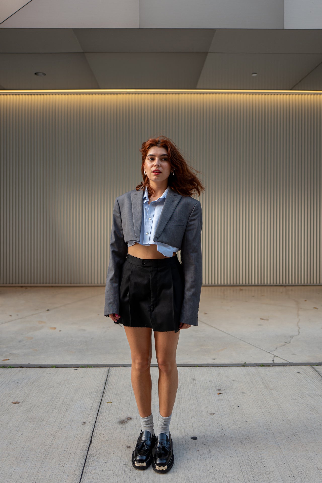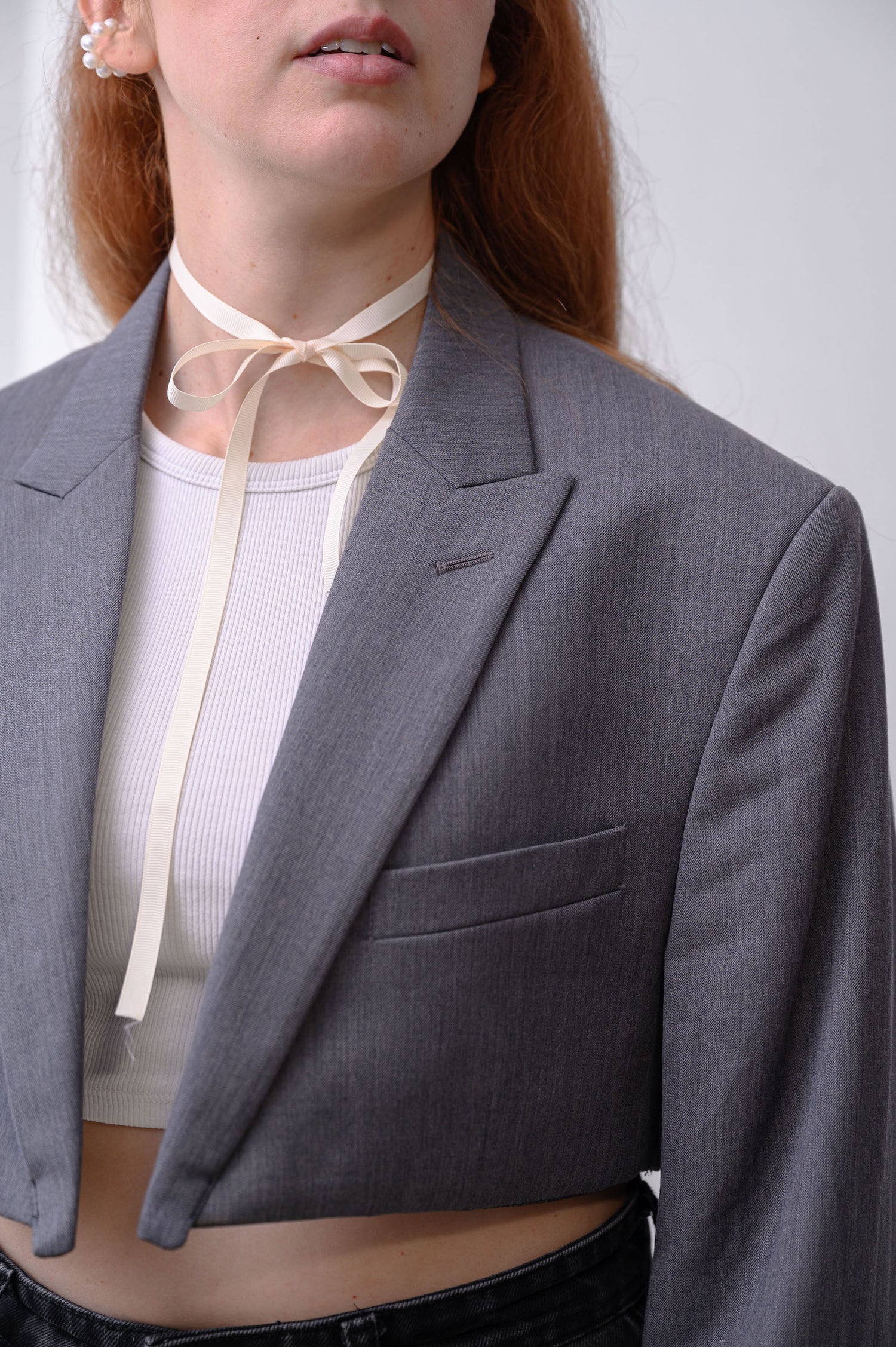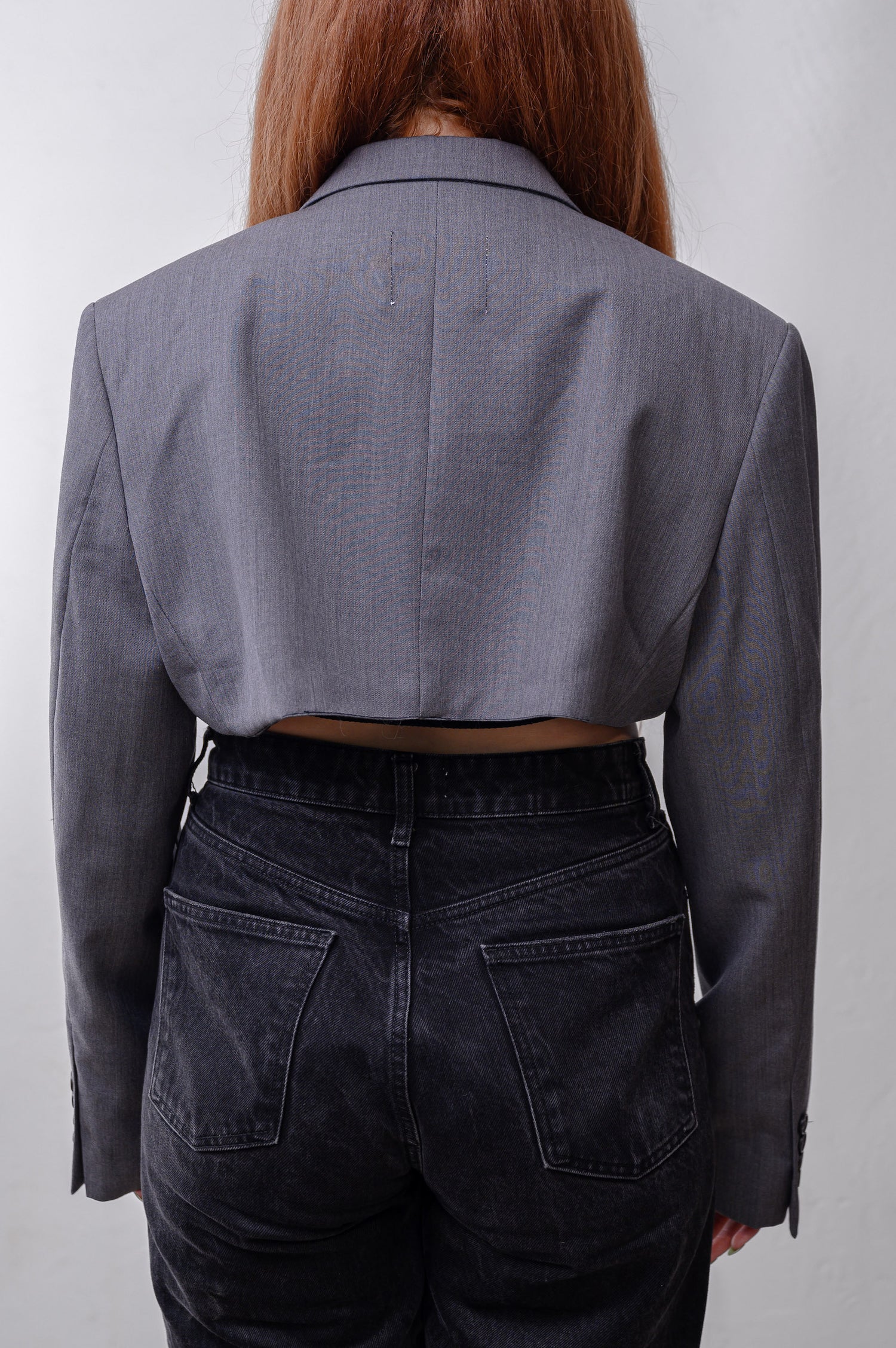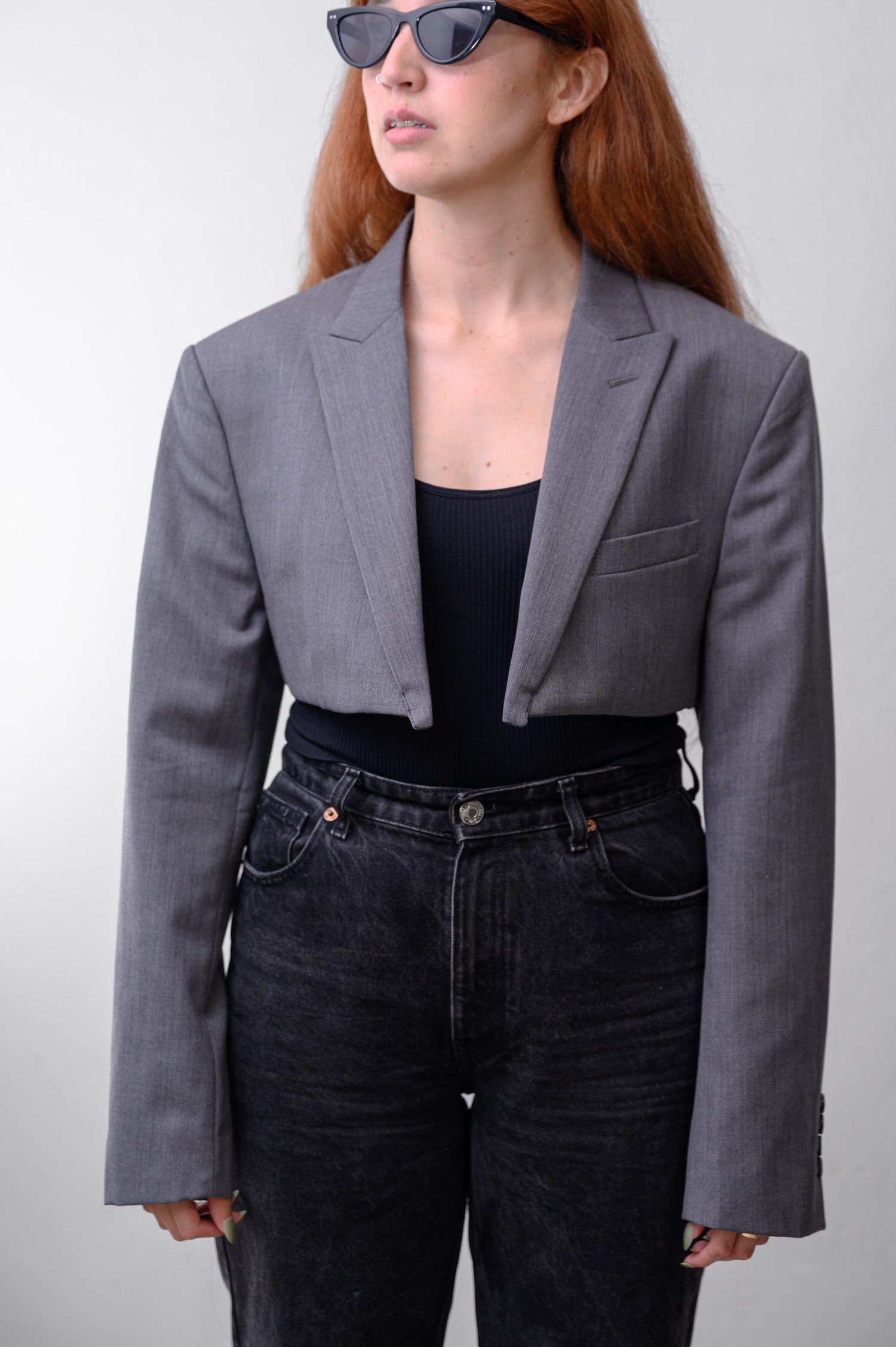 Get edgy with our Mini Sako blazer. This cropped blazer brings a playful and stylish touch to any outfit. Perfect for adding a pop of personality to your wardrobe.